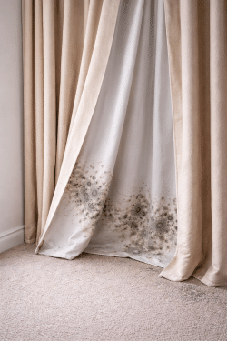 That moisture settles on the coldest surfaces, usually the exterior walls and windows, and mould in bedrooms tends to cluster in corners, behind furniture pushed up against outside walls, and along the bottom edge of curtains.